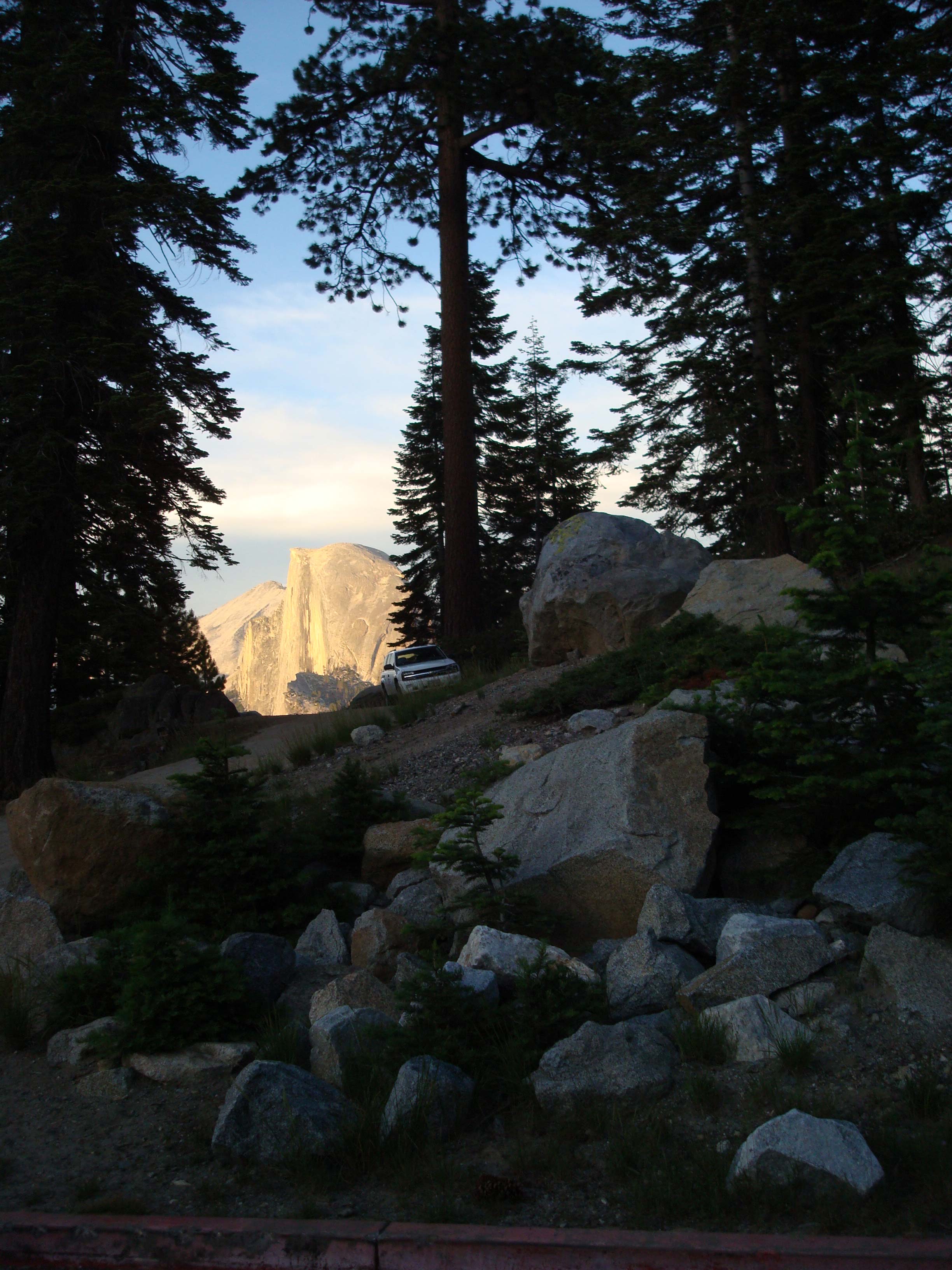 2009 A shot of Half Dome. You can tell from the shadows that it's late in the afternoon. Just heading in from the campground to get set up for the evening. |
